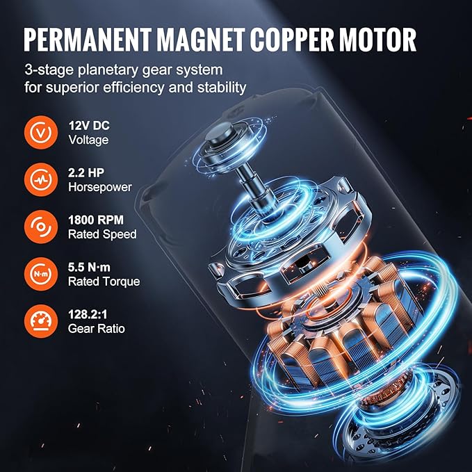 - Power that Gets You Out of Any Jam: Our ATV winch is driven by a robust 12V DC/2.2 HP permanent magnet copper motor, delivering continuous and efficient power when you need it most. With advanced planetary gear system and a 128.2:1 gear ratio, ensuring reliable and powerful pulling strength. Whether you're facing harsh weather or deep mud, this winch has you covered, making vehicle recovery effortless and reliable.