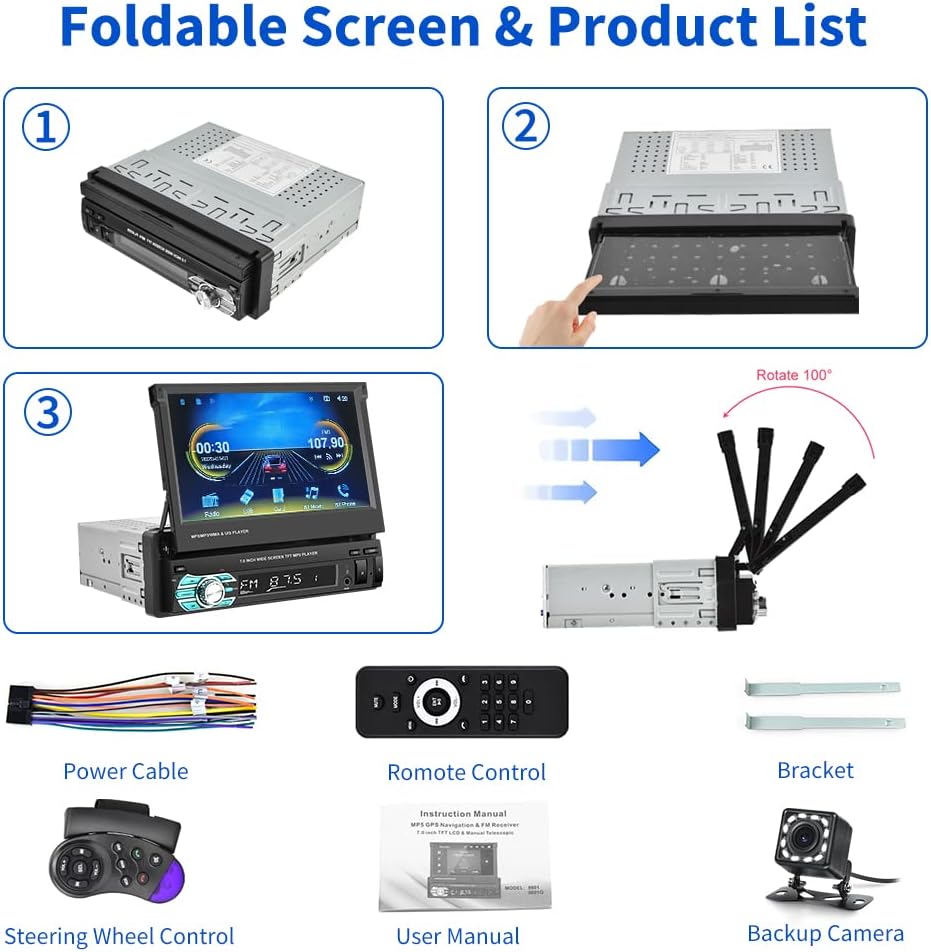 - ăBuilt-in Apple Carplay & Android AutoăThe filp up car player supports built-in wired carplay and Android Auto. Just connect with your smartphone that make this single din apple carplay possible for you to access map navigation, phone contacts, email, notification, music. Voice Control, Let you talk to Siri or Voice Assistant to control everything