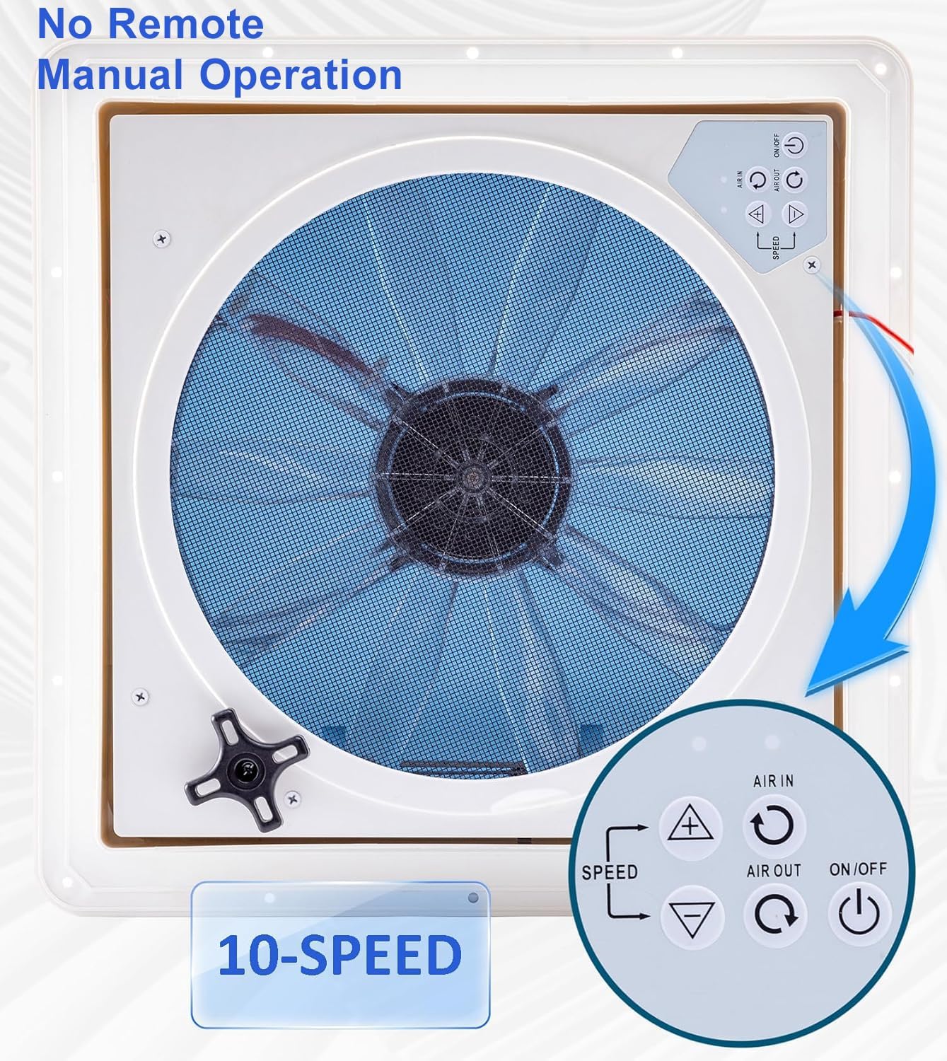 - Powerful and Efficient: This RV roof fan provides a fantastic air circulation for your RV Tralier or Camper. And it moves a lot of air but only use little power because of this durable and stable can motor.