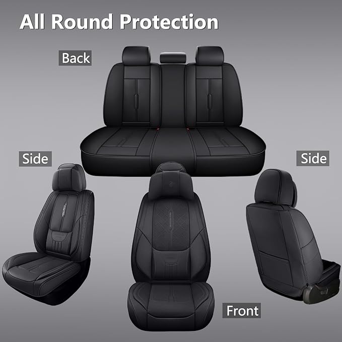 - 【Universal Fit】The car seat cushion fits for Ford,Chevrolet,Buick,Volkswagen,Toyota,Honda,Nissan,Mazda,Mitsubishi,Hyundai,Kia, Jeep,etc... Meanwhile the leather car seat cover full set has a wonderful envelopment with the car seats which can maximize the protection to the seats. We leak out the air bags, so once an accident occurs, the air bags still work.And the leather is breathable so that the cover will not affect the function of heating or cooling in your car.