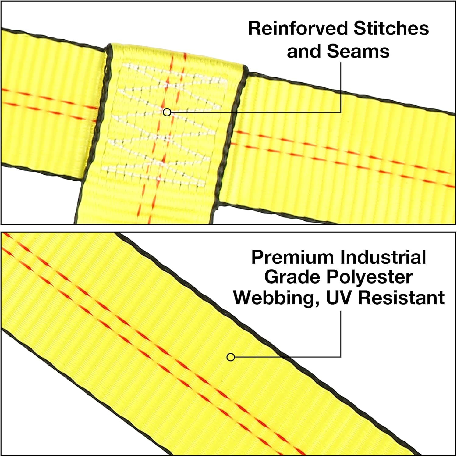 - Made Of High Quality Nylon, Width: 2inch Webbing,10000 lbs Break Strength, Industrial grade polyester tow dolly straps is waterproof and UV Ray resistant. Industrial-Grade Polyester Webbing for Maximum Strength And Durability.