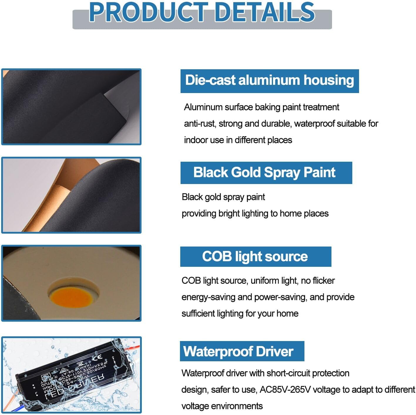 - 【LED Sconce Light Source】Exterior wall sconce 20W COB light source with 3000K color temperature, providing soft and energy-saving bright light. voltage of 85V-265V, (note: not dimmable)