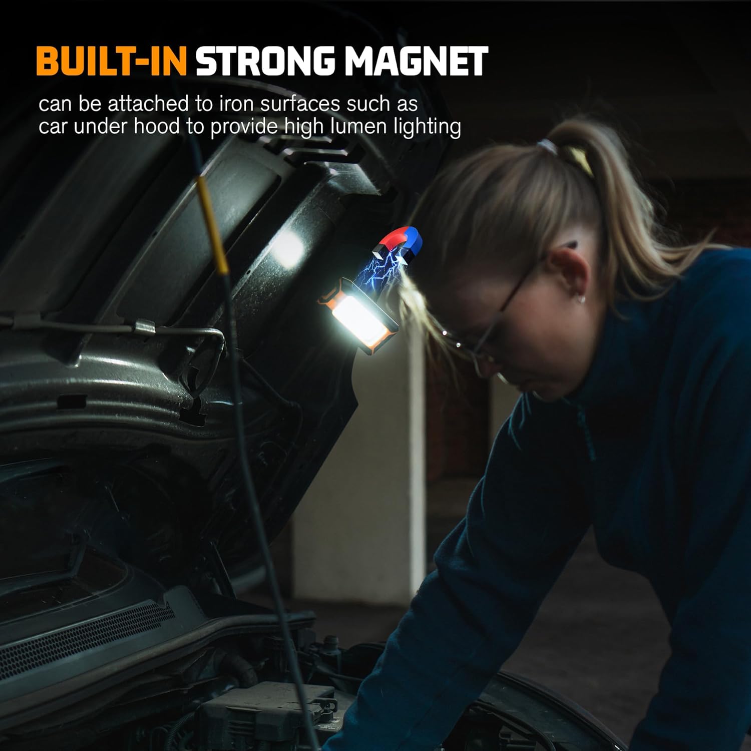 - 【WIDE APPLICATION】The magnetic shop light is designed for multi-purpose, fitting for indoor and outdoor activities and meeting the demands of both professional and DIY workers. The rechargeable led work lights can be widely applied in for home, automotive repair, camping, working on repair, emergency roadside repairs, electronics repair, and emergency roadside assistance etc..