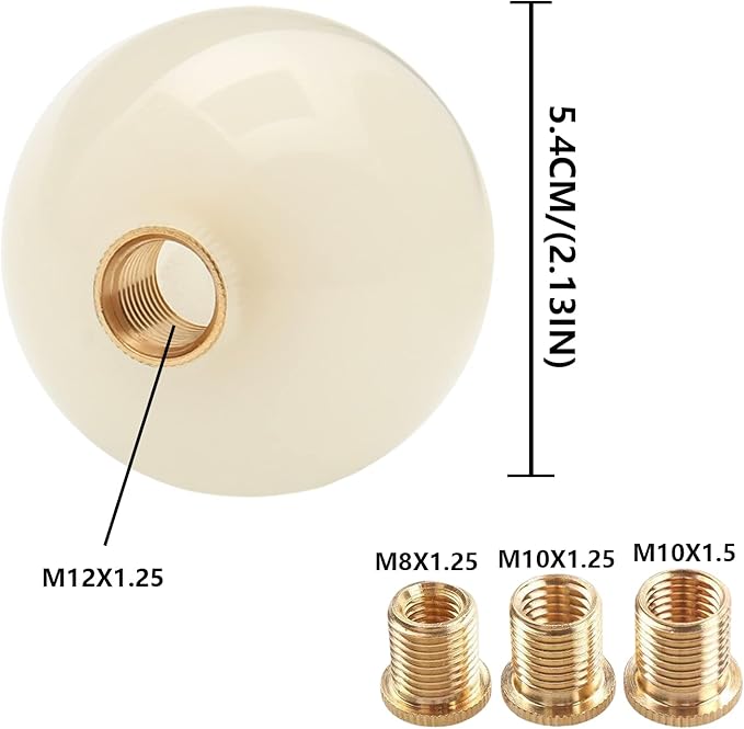 - š®[Installation & Size] No modification required, direct replacement. Shift knob OD: 5.4 CM(2.13"), thread: M12*1.25; Adapters: M8*1.25, M10*1.25, M10*1.5.