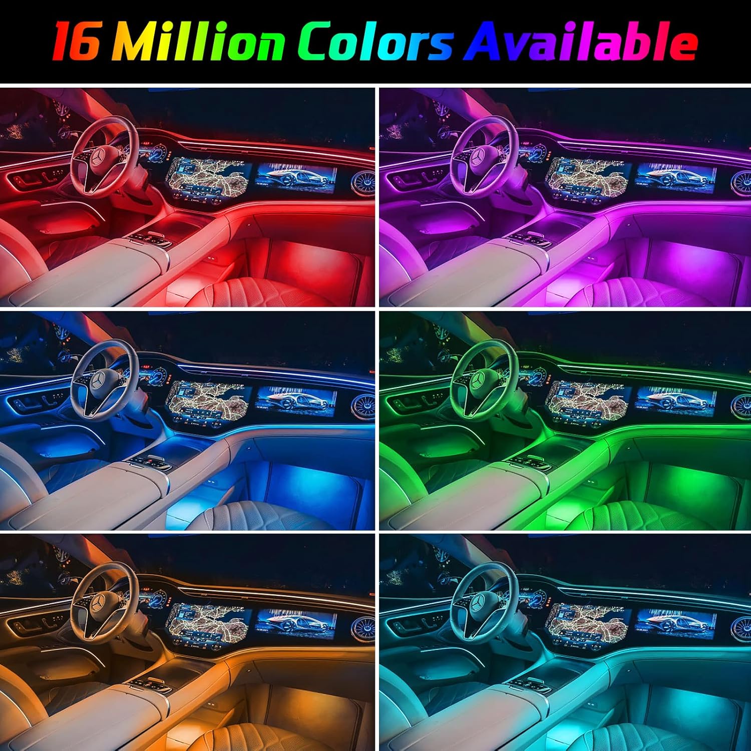 - ăUpgraded 10 Lights Car Lightsă This interior LED light comes with 6 fiber optic lights and 4 footlights that can be mounted on your car's dashboard, center console, 4 doors, and 4 footwells. (can replace any parts.)