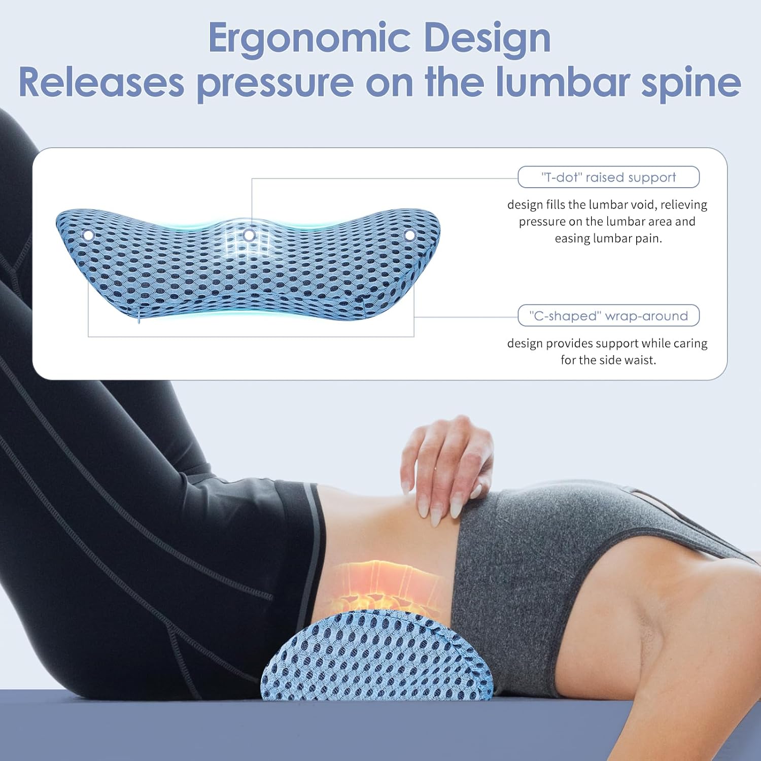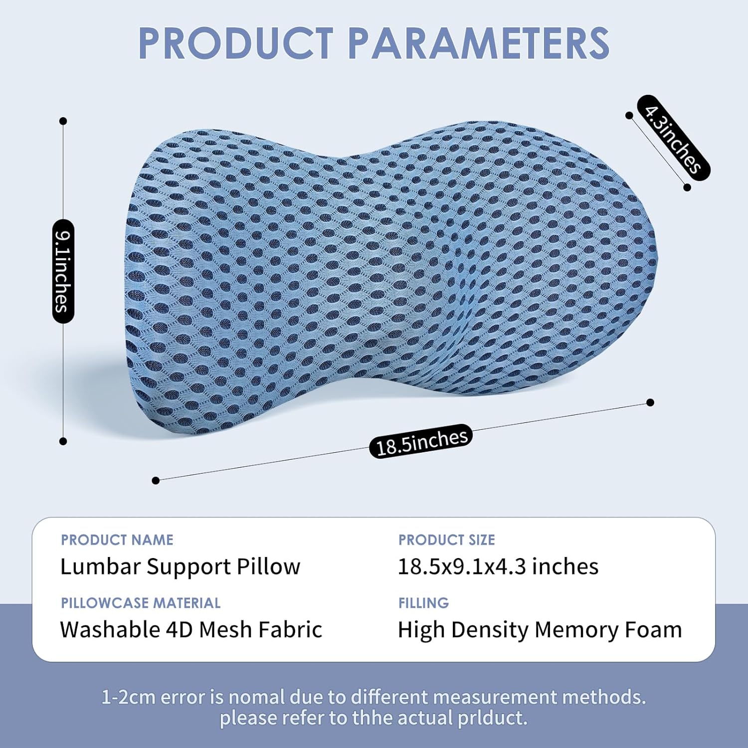 Lumbar Support Pillow Ergonomic Memory Foam, Relieve Back Pain, CMFY Breathable & Detachable & Washable, Perfect for Office Chairs, Car Seats, Beds (Blue)