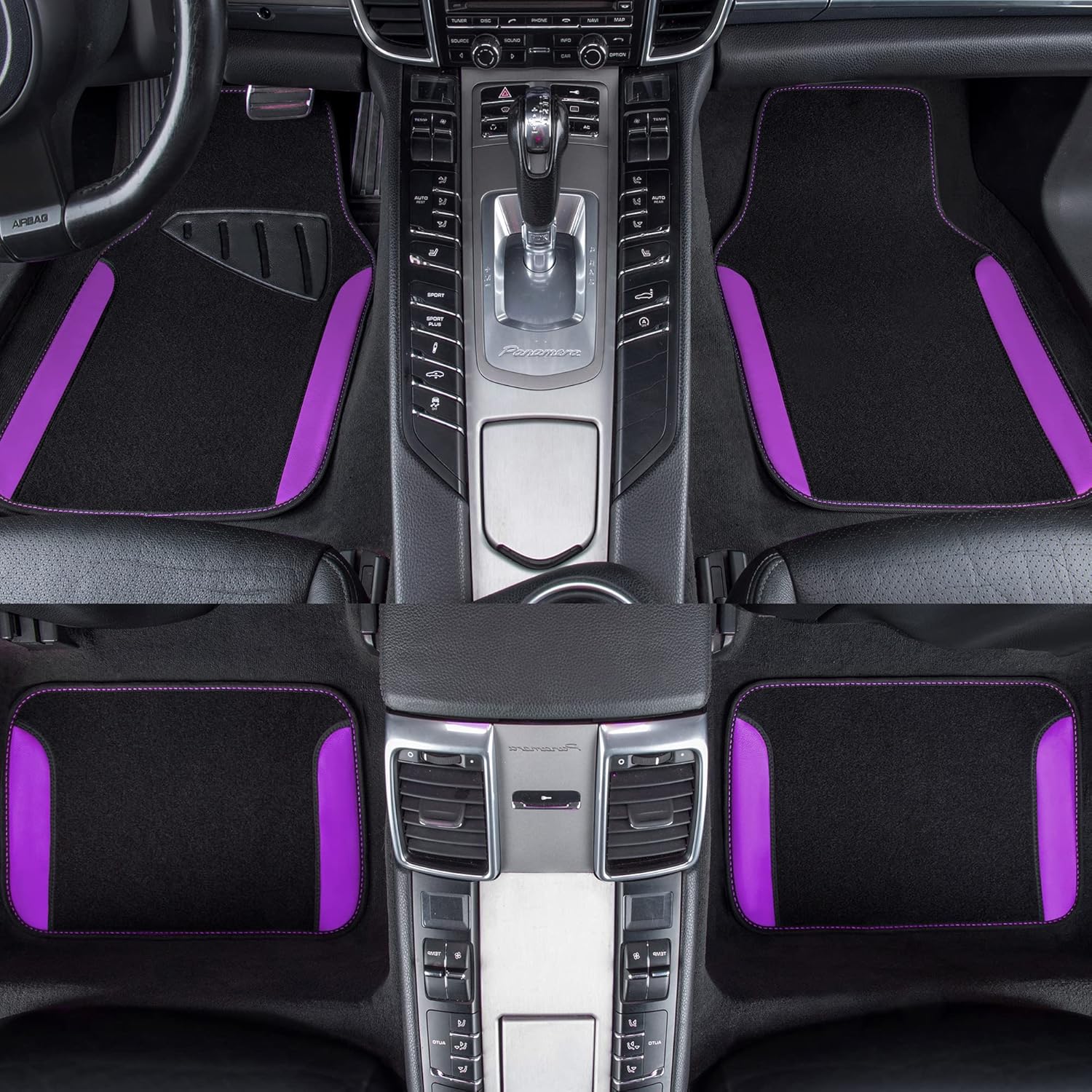 CAR PASS Waterproof Universal Fit Car Floor Mats, Faux Leather Car Carpet Mats with Anti-Slip Nibbs Backing & Driver Heel Pad Fit for SUV,Vans,sedans, Trucks,Set of 4pcs for Women (Black with Purple)