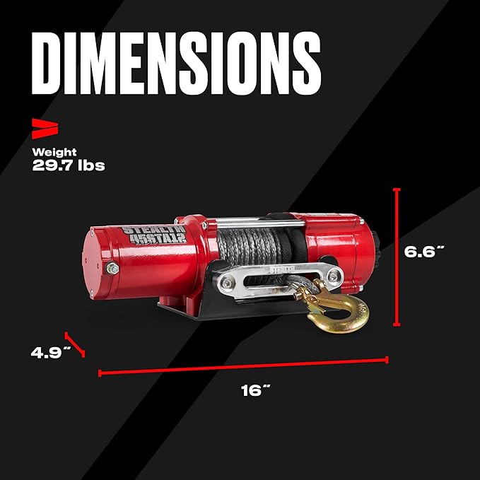 - DURABLE SYNTHETIC ROPE – Equipped with a synthetic rope, offering strength, long cable reach, and lightweight handling. Ideal for winches for trucks, boats, or Jeeps, making it the perfect on-road winch companion.