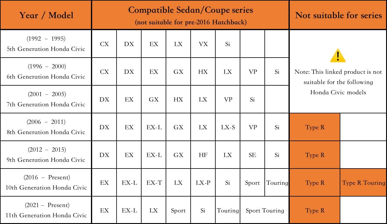 - ăSuitable forăâ Custom fit for Honda Civic Sedan/Coupe (1991-2025). Come with a large enough portable bag to store your cover when you do not use