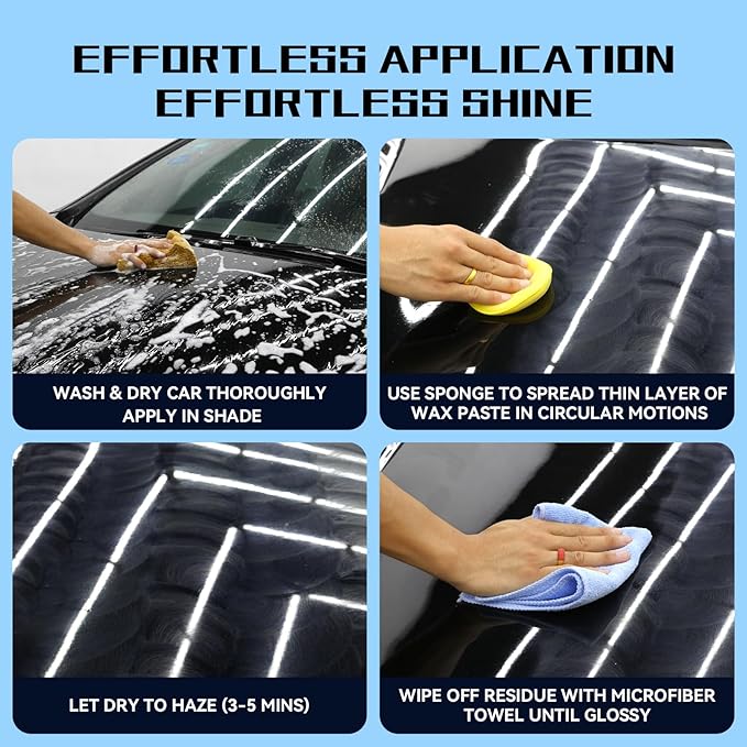 - ✨ 【Efficient Application】Smooth paste consistency spreads evenly with minimal effort; included applicator sponge allows controlled application to avoid wax buildup in panel gaps.