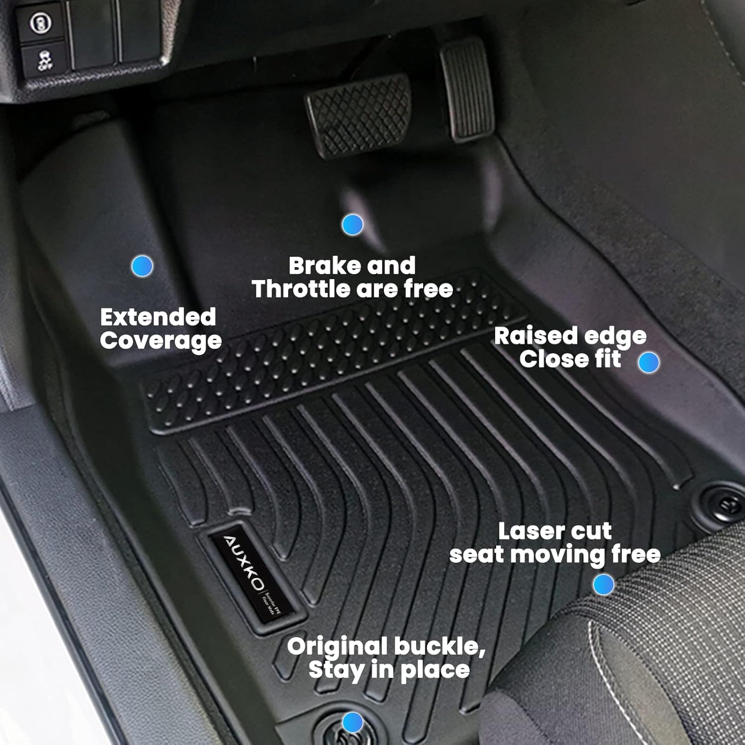 - 🚗FITS LIKE A GLOVE: Fits with Honda Civic 2022-2025 2026 not for hybrid and Acura Integra 2023-2025. Auxko floor mats are high-precision laser measured, meaning our custom fit will offer optimal coverage and look as if the mats came with your 2022-2025 2026 Honda Civic Sedan(LX,Sport,EX,Touring)/Si Sedan(Si, Si HPT)/Hatchback(LX,Sport,EX-L,Sport Touring) and acura integra. Auxko incorporates a specially designed retention system and non-slip nibs on the mats to keep them locked in place.