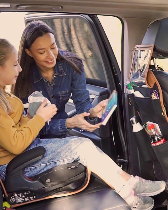 - NO MORE CLUTTER. Keep kids’ travel essentials - from coloring books to water bottles- neatly organized and within reach on long road trips or daily school runs. A sleek car seat organizer that makes road trip activities easier and more accessible.