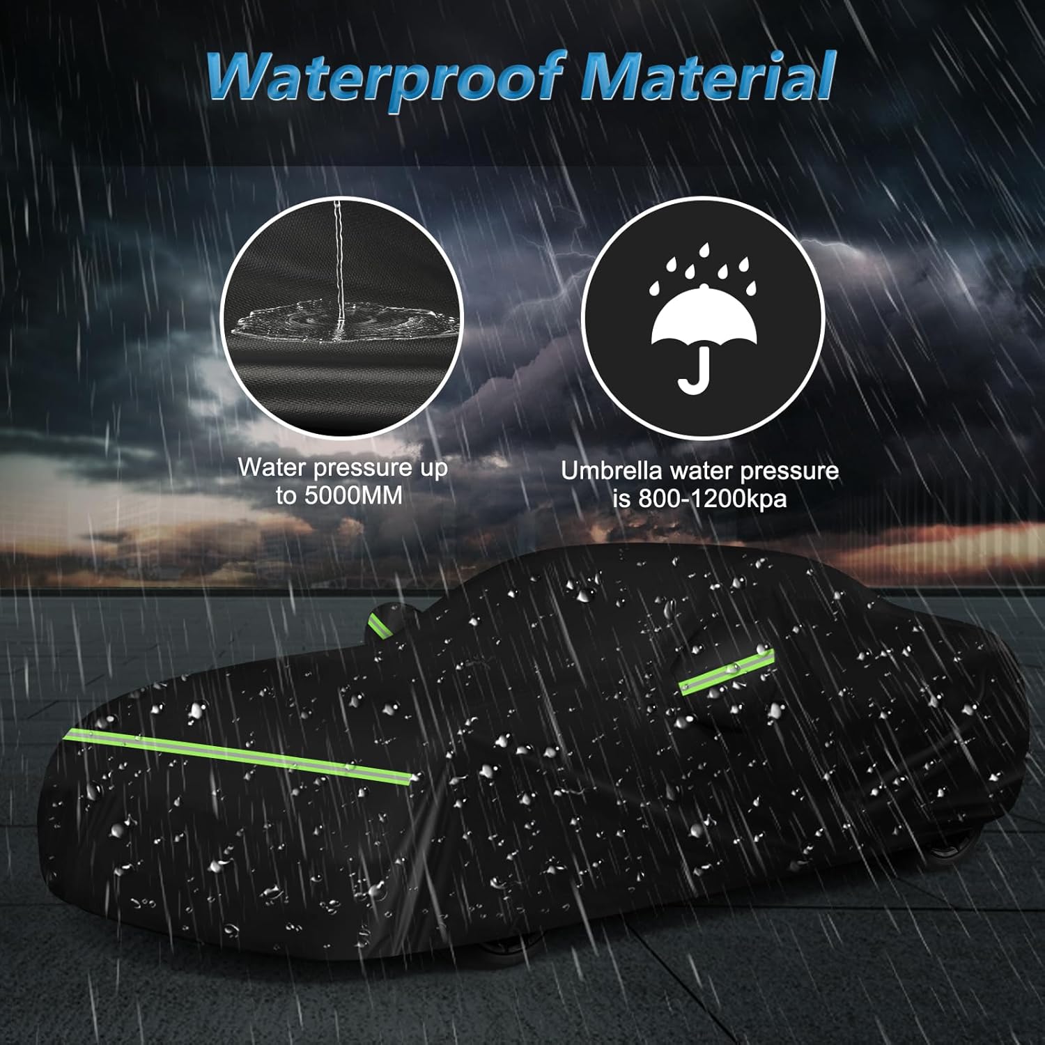 - ăSmart DesignăWaterproof Strip. PU Coating: UV protection, heat-proof, prevents aging of interior materials. 5 Reflective Strips enhance visibility at night. Comes with four straps, windproof buckle, security lock, and storage bag.Double-stitched for exceptional waterproofing, no seepage.