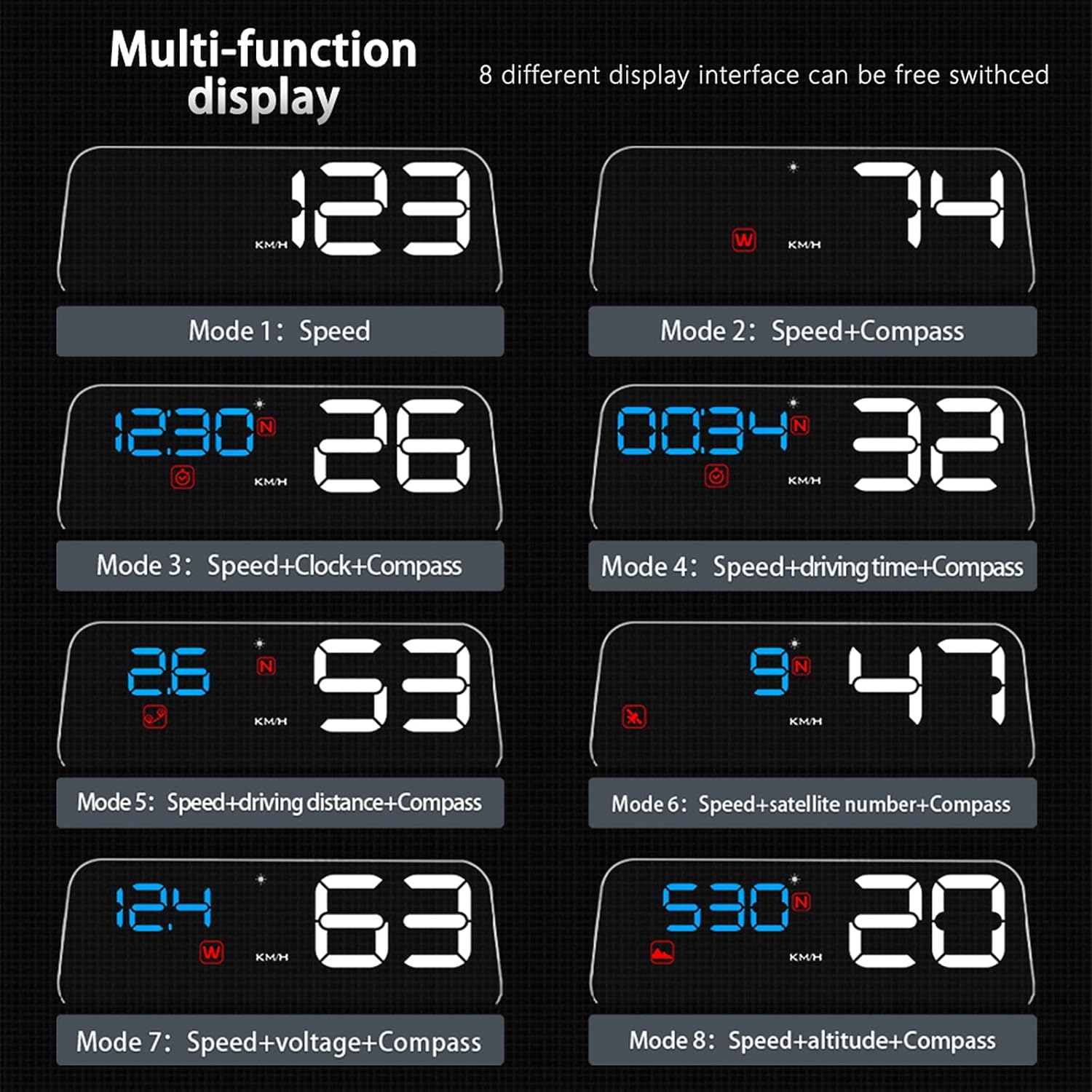 Universal Car HUD Head Up Display T900, with Satellite Clock, Single Driving Time and Single Driving Distance, Work for All Vehicles