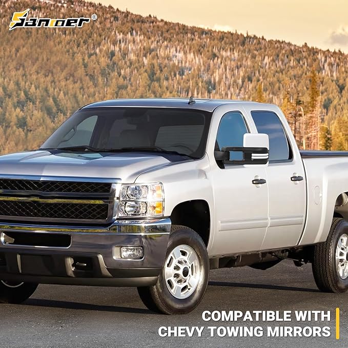Sanooer Towing Mirrors Painted White Switchback Dynamic Turn Light Compatible with 2007-2013 Chevy Silverado Suburban Tahoe GMC Sierra Yukon with Running Lights Power Glass Backup Lamp Heated Set