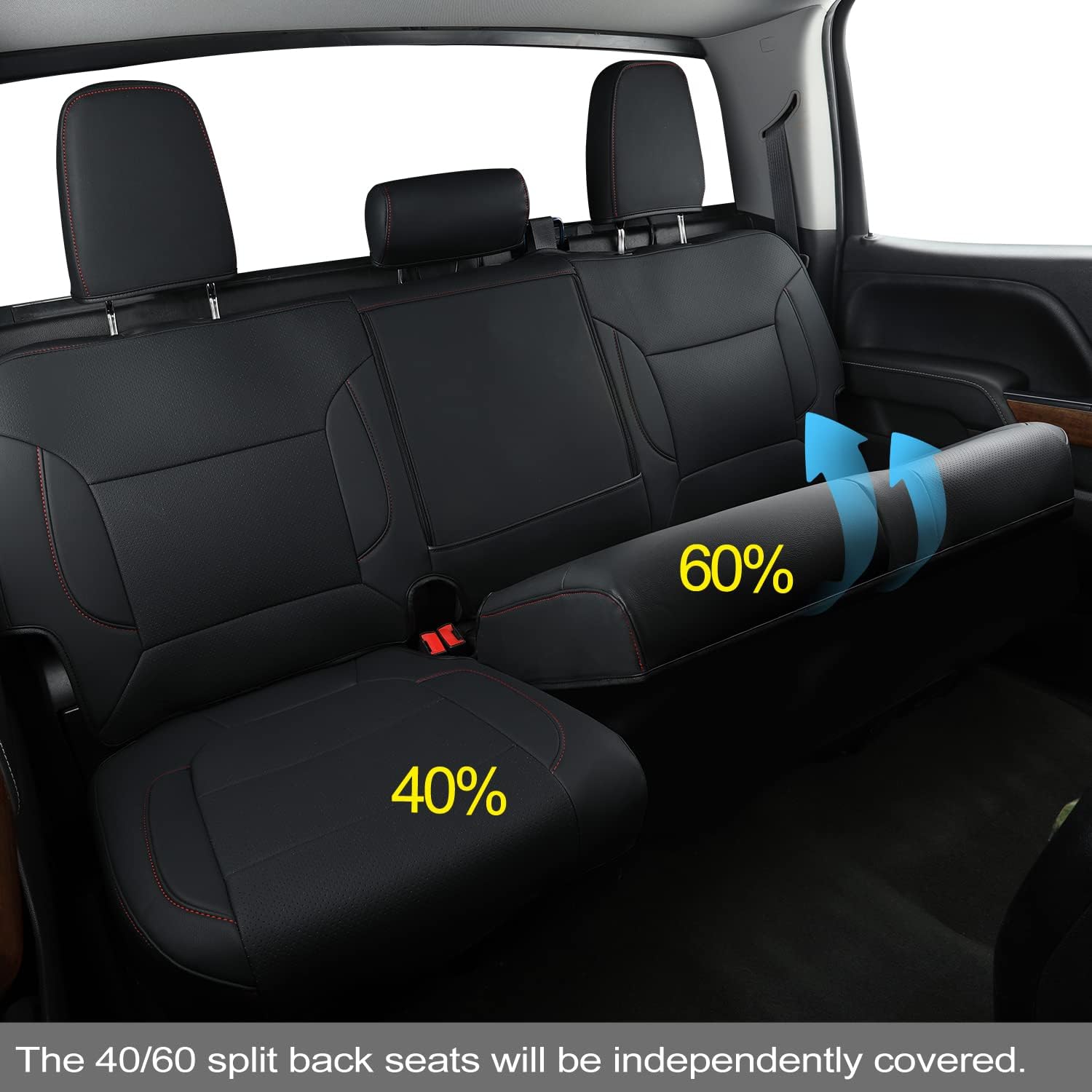 LUCKYMAN CLUB Custom Fit Seat Covers for 2019-2024 2025 Chevy Silverado Sierra 1500 Crew Cab, 2020-2024 2025 Silverado Sierra 2500 3500 Crew Cab (Black&Red)