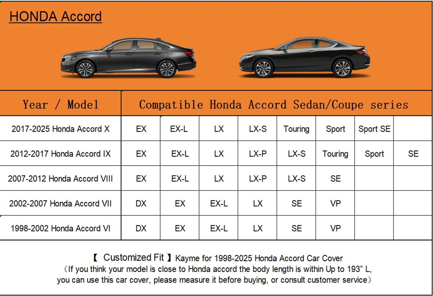 - ăSuitable foră-Customer fit for Honda Accord sedan/coupe(2001-2025). Come with a large enough portable bag to store your cover when you do not use.