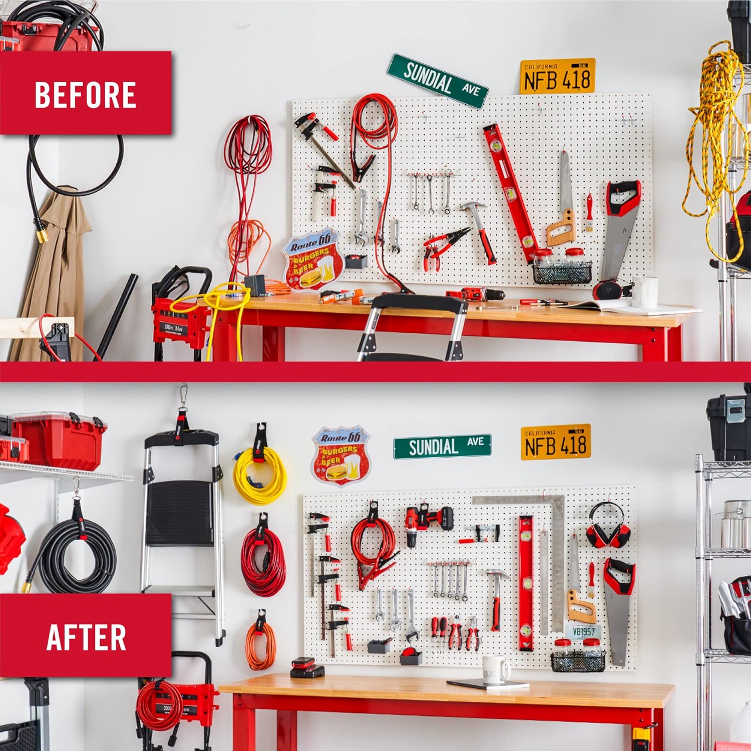 - GARAGE ORGANIZERS AND STORAGE: Keep power cables, hoses and more tidy, hang tools from peg hooks for easy access, these straps are the perfect shop organization and storage tool