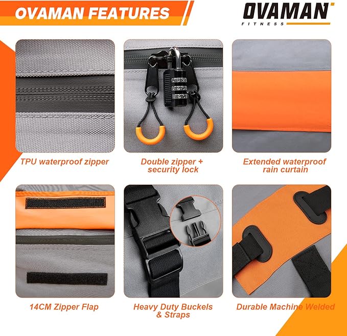 - 【UPGRADE 900D PREMIUM MATERIAL】This roof bag is made of military grade material 900D abrasion resistant PVC fabric. Features two waterproof closure zippers, 100% waterproof double stitching technology and waterproof double coating