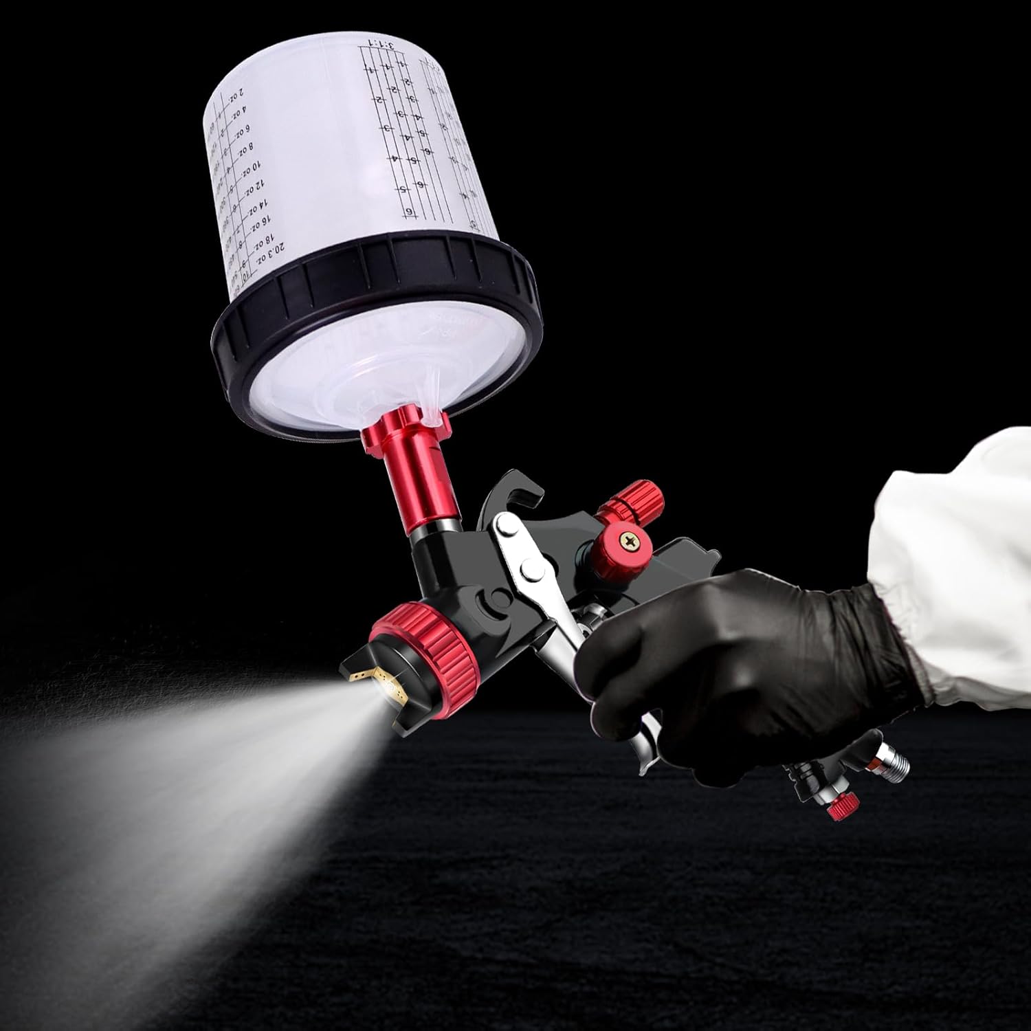 - Save costs: Our paint mixing cup can be store safely with disposable lids and cup sealing plugs. If there is any leftover material after spraying, you can store it in the inner cup for next use without paint waste.