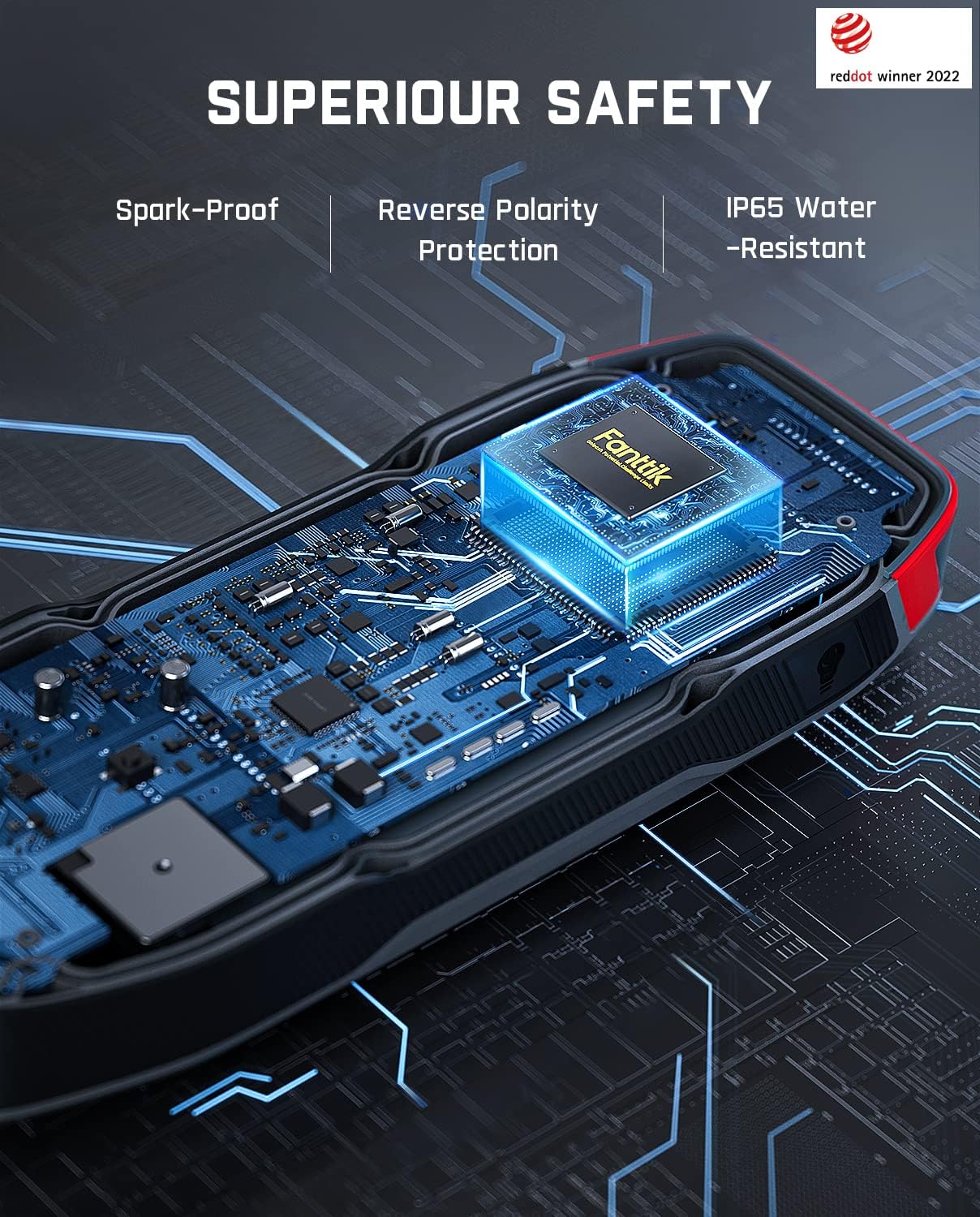 - [Extreme Safety] We adopt TenSafe technology and improved upon it. With our mistake-free design featuring reverse polarity and spark-proof technology, you have no worry of incorrect connections. And with enhanced thermal efficiency and power management to provide stronger performance and longer battery life.