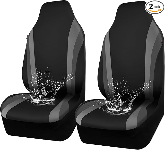 CAR PASS AquaShield Neoprene Waterproof Car Seat Covers for Front Seats Only, High Back Bucket Seat Cover,Airbag Compatible,Line Rider Seat Covers Universal Fit for Truck Van SUV (Black and Gray)