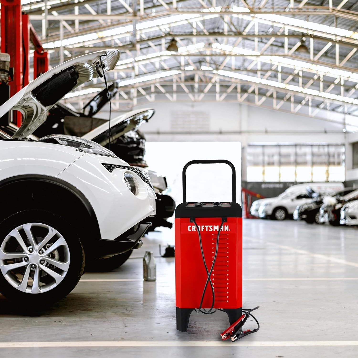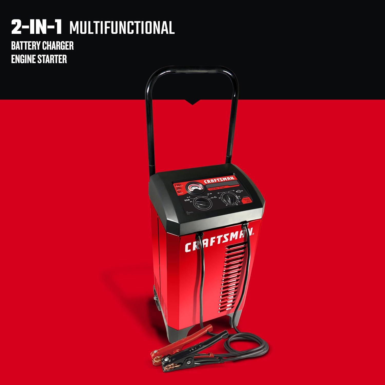 CRAFTSMAN Manual Wheeled 6A Battery Charger and 175A Engine Starter, 2-in-1 Solution for 12V Batteries, 25A Boost, Timer-Controlled, CMXCESM274, for Car, SUV, Truck, and Boat Batteries