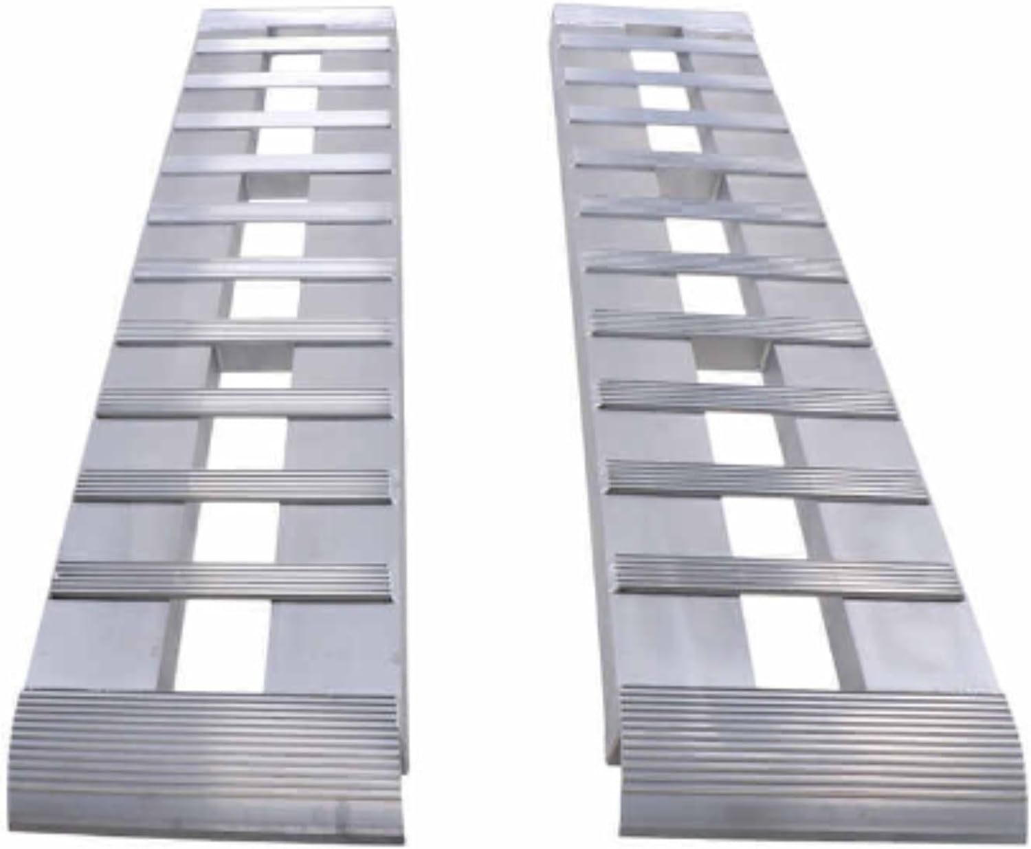- Lightweight Yet Durable: Crafted from high-quality aluminum, these ramps for trailer use are significantly lighter than steel while maintaining robustness - weighing 40.5 LBS each (81 LBS Total). Aluminum trailer ramps offer a perfect balance of strength and portability for any loading task.