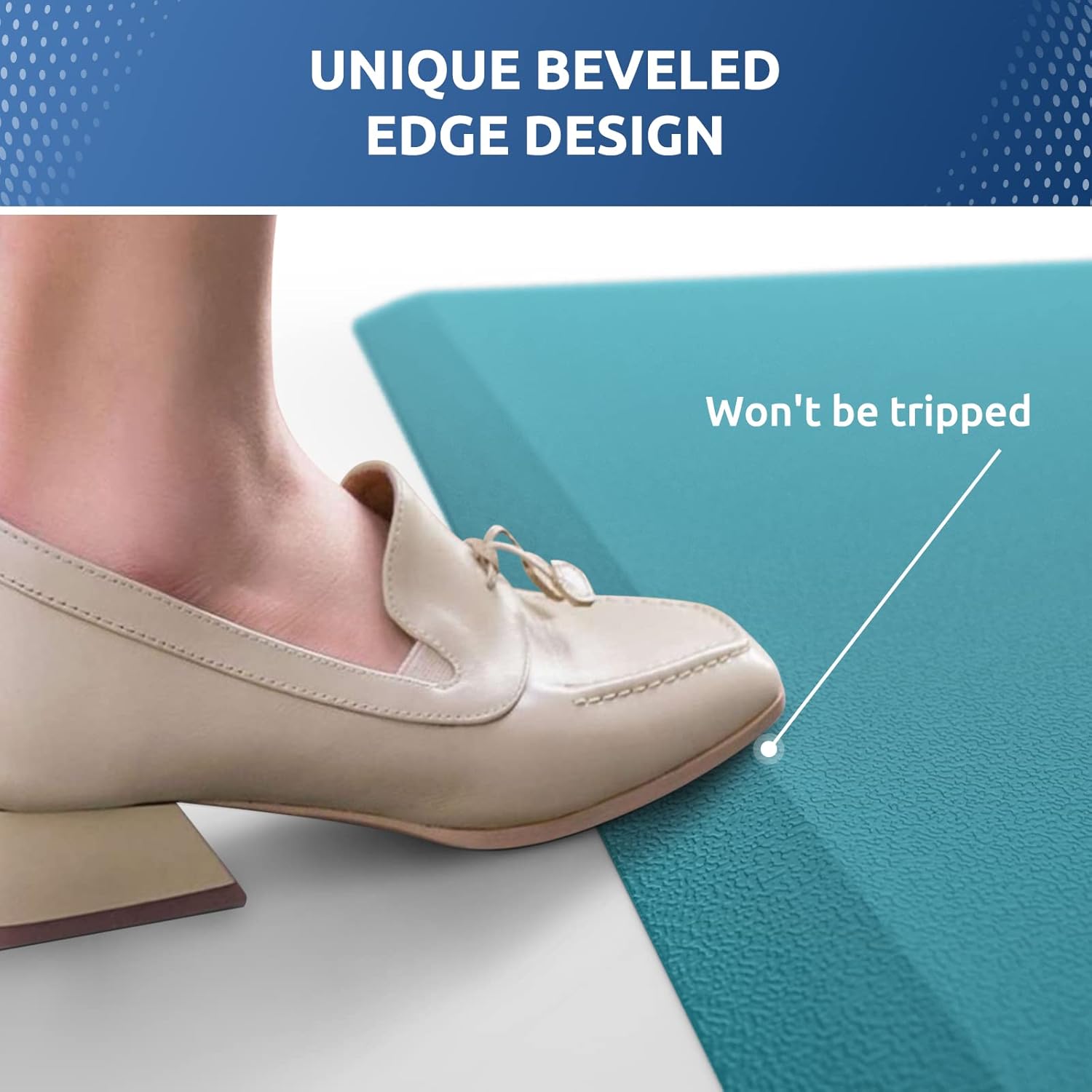 - Safety Design: The diamond-shaped design on the bottom of kitchen mats for floor keeps the rug in place and prevents slippage. The bevel edge reduces the risk of tripping on the mat.