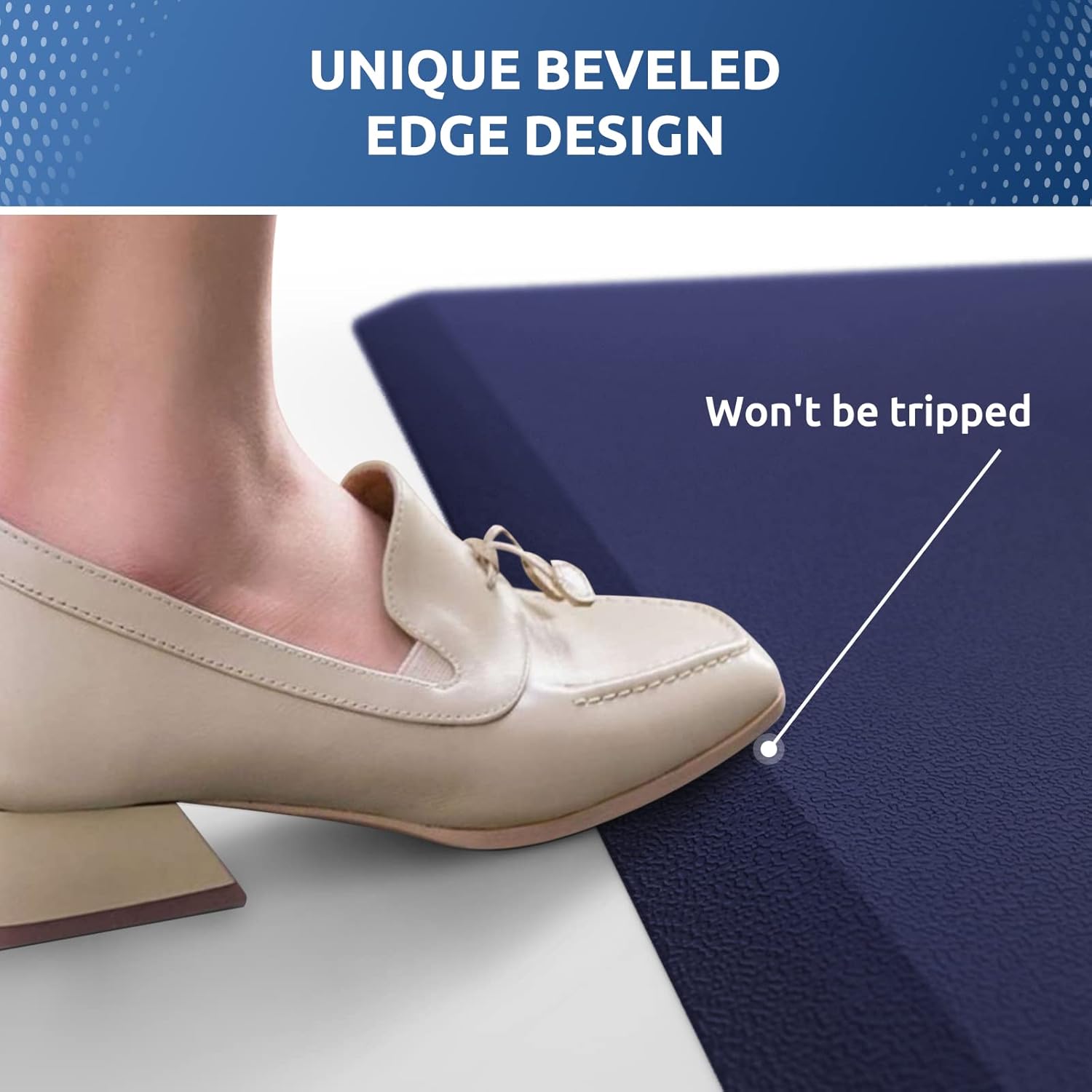 - SAFETY DESIGN: the diamond-shaped design on the bottom of anti fatigue mats keeps the mat in place and prevents slippage; the bevel edge reduces the risk of tripping on the mat
