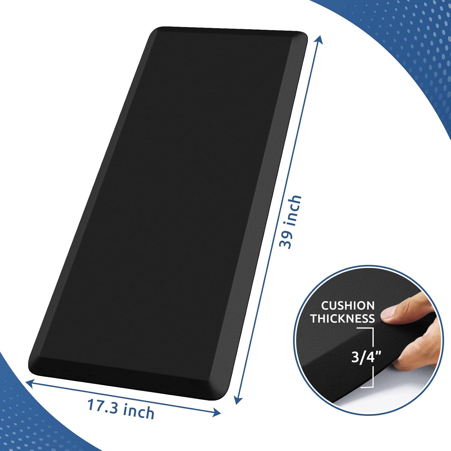 KitchenClouds Kitchen Mat Cushioned Anti Fatigue Kitchen Rug Non Slip Standing Mat Comfort Floor Mats for Sink Office (17.3"x39"- 0.8inch,Black)