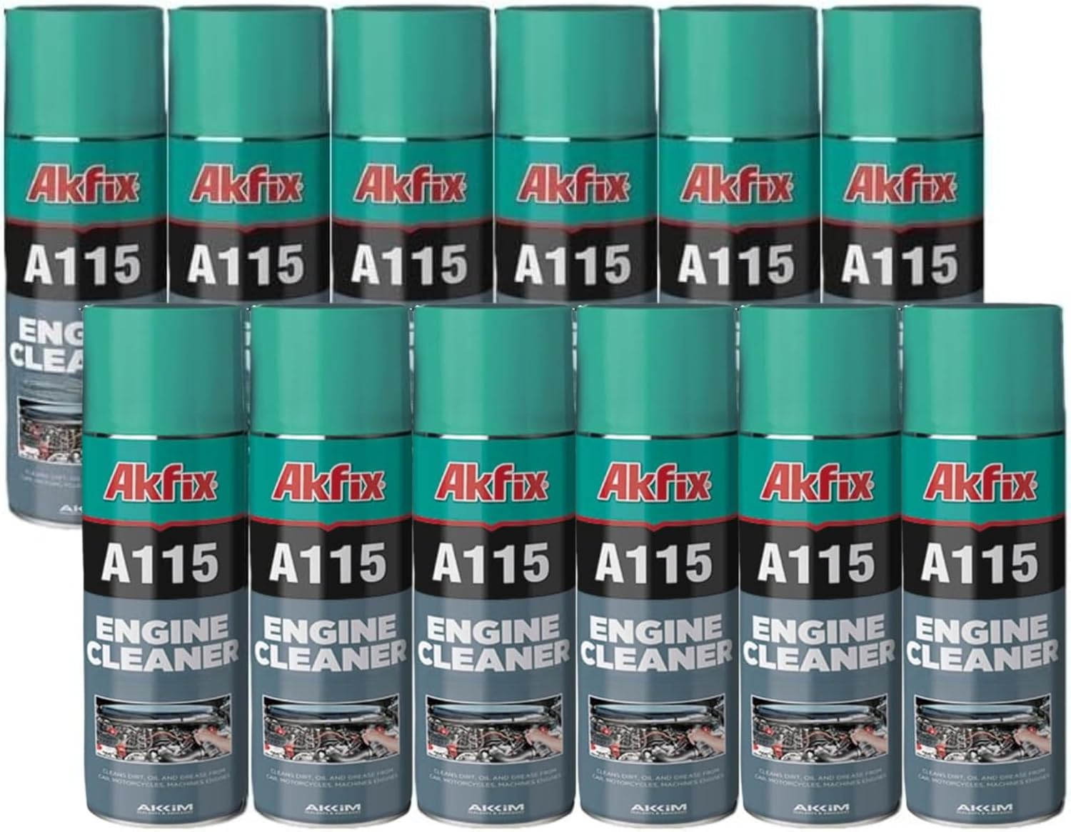 Akfix A115 Engine Cleaner and Degreaser - Quick and Bright Cleaner for Car, Motorcycle, Automotive and Machine Engine - Oil Grease Remover, Degreaser Cleaner Spray | 12 Pack, 16.9 Oz.