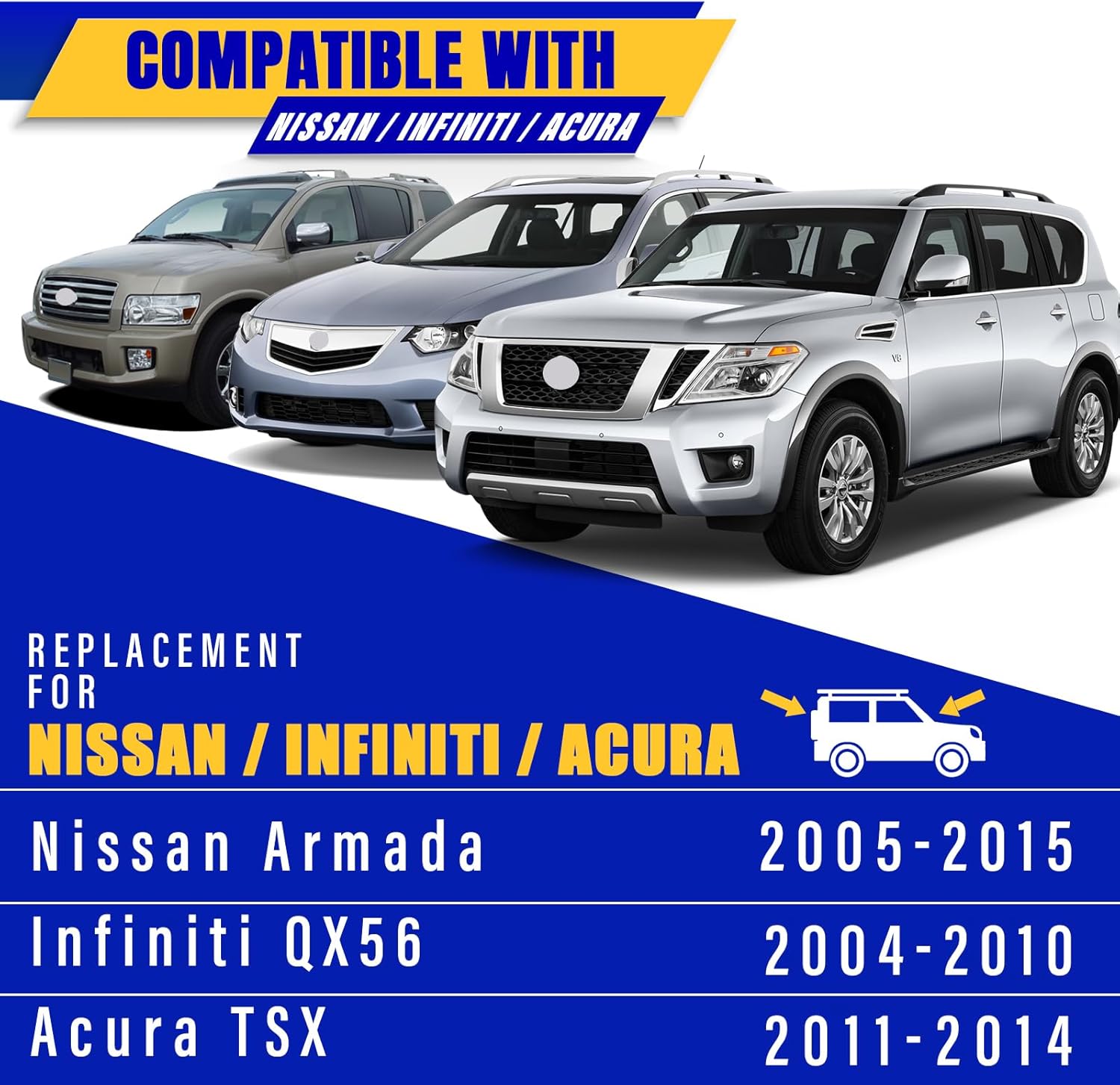 - Vehicle Service Type : 2004-2010 Infiniti QX56, 2005-2015 Nissan Armada, 2011-2014 Acura TSX