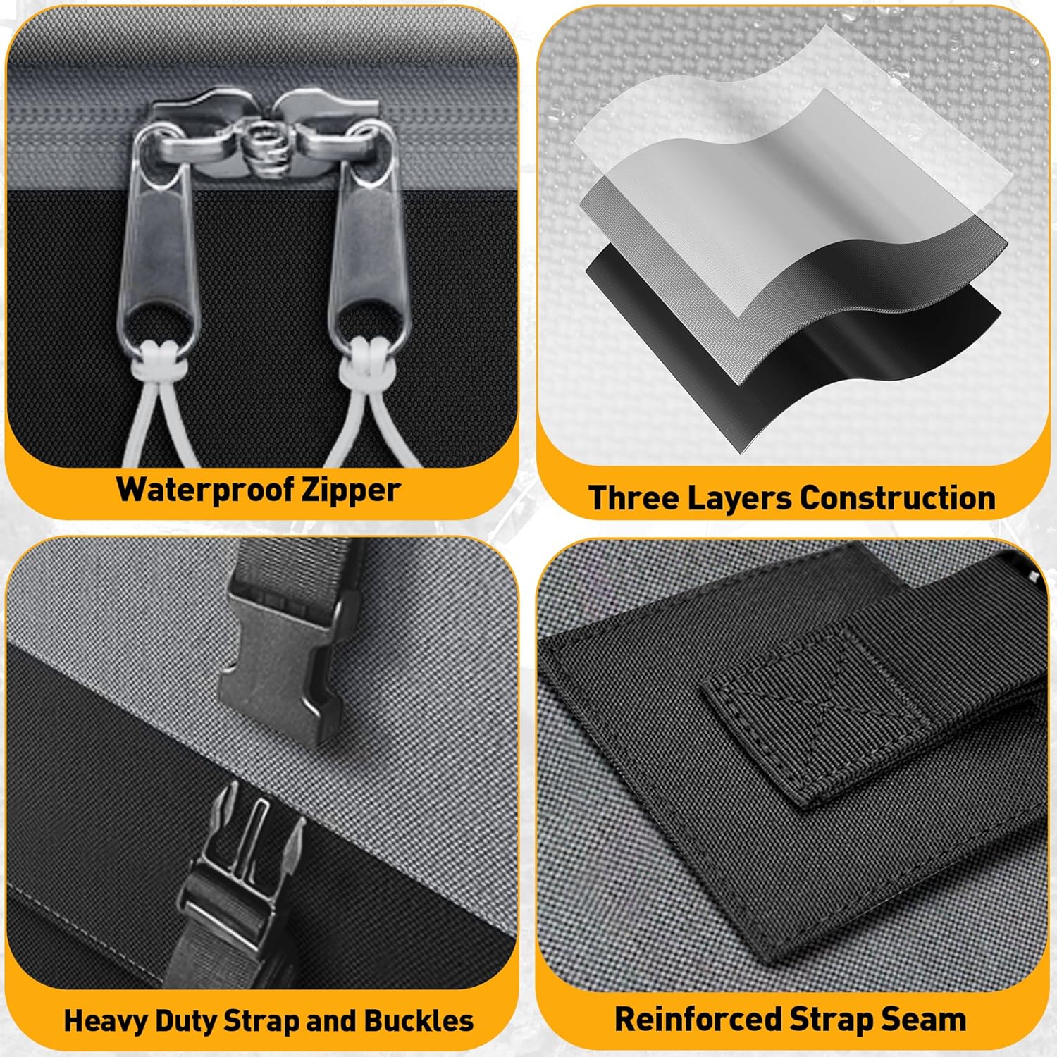 - 21 ft³ CARGO BAG: Ultra rugged fully waterproof 600D rooftop cargo carrier bag with water repellent double coating surface and liner. Always keeping your belongings dry in all weather conditions. 59.1"(L) x 39.3"(W) x 15.7"(H) extraordinary capacity helps to maximize cargo storage and provides extra 157 gallon cargo storage space for your vehicle.