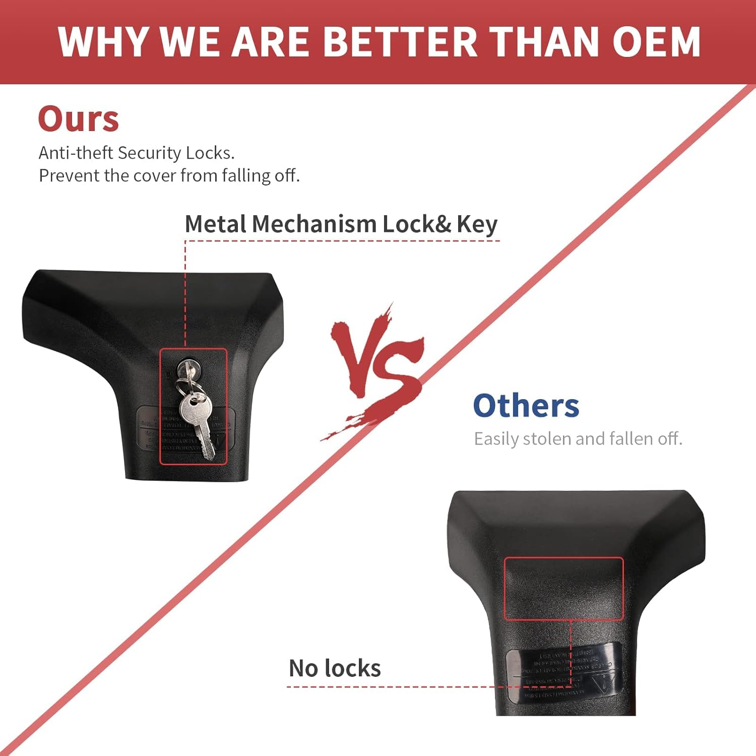 - 【Exceed OEM parts in securest and strongest 】Die-casting aluminum brackets and upgraded heavy duty 2.4mm thickness aluminum bar which add to extra load capacity and durable, better than most in the market. Metal mechanism lock system offers 100% secure for anti-theft and durable. Max load capacity is 260lbs (118kg), do not worry about the heavy luggage.