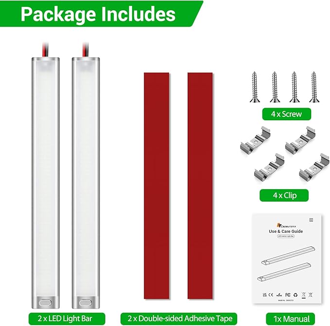 - 【Total Package】 - The package includes 2*12v led lights, 2*strong self-adhesive tape, 4*stainless steel clip and 4*stainless steel screw. And the switch is located at the end of the light bar, which could be conveniently operated any time necessary. This LED car interior light bar approved by multi-security certificates will ensure the safety of you and your vehicle. If you have any questions, please contact us in time and we will help you solve them