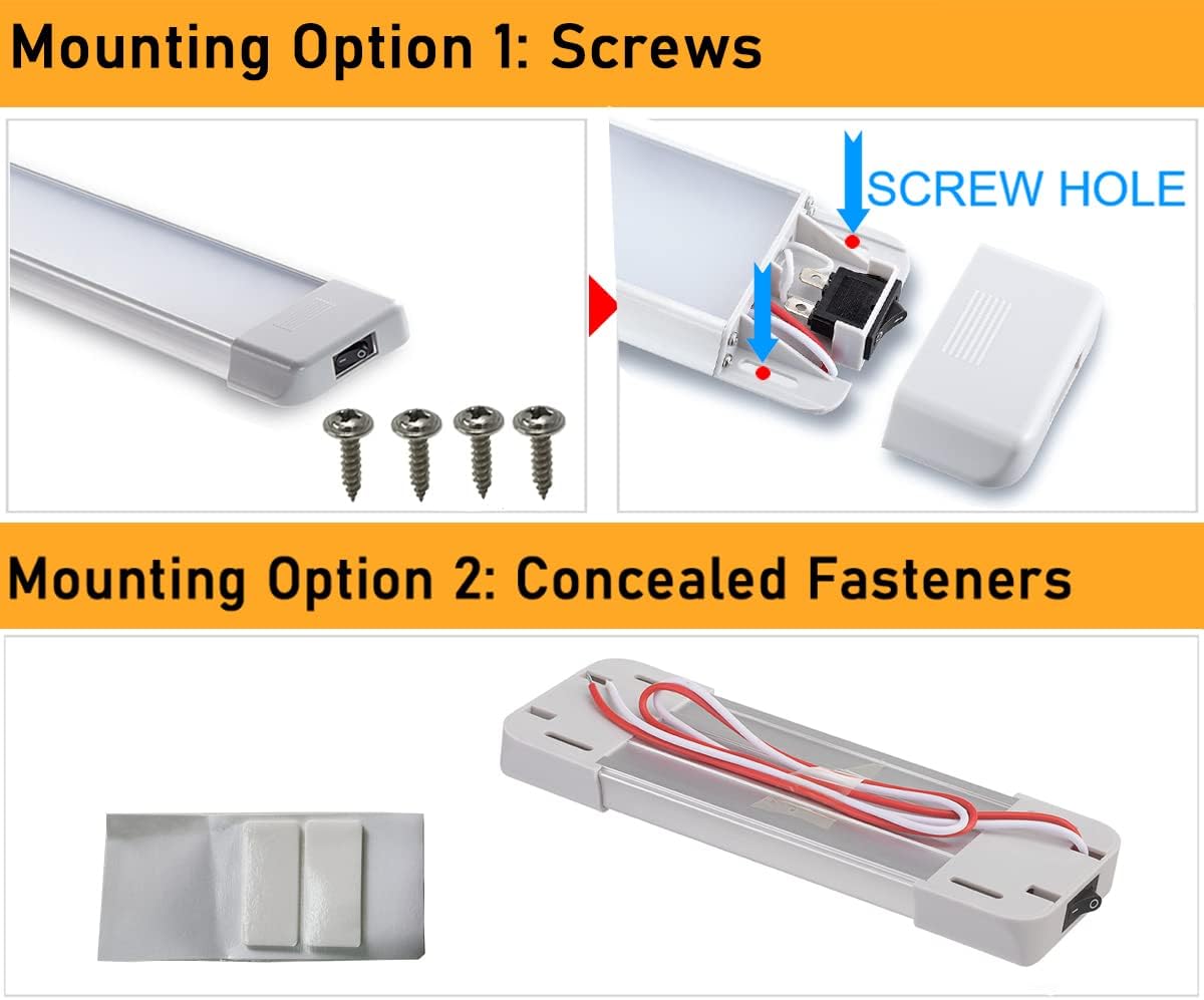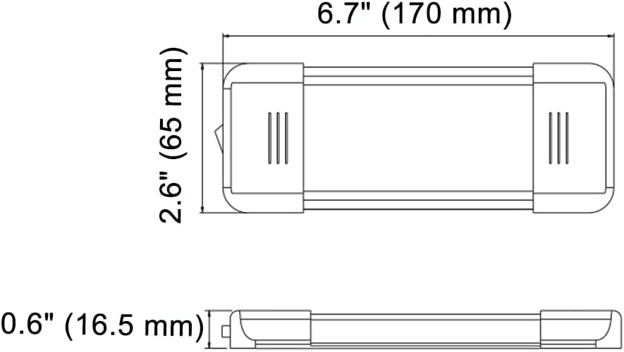 LED Interior Utility Light Fixture 6.7" x 2.6", High Lumen-Output Low Current Draw Energy Efficient, Frosted Lens 6000K Cool-White Even Diffused Beam, On/Off Rocker Switch, 12V-24V DC, 1-Pack