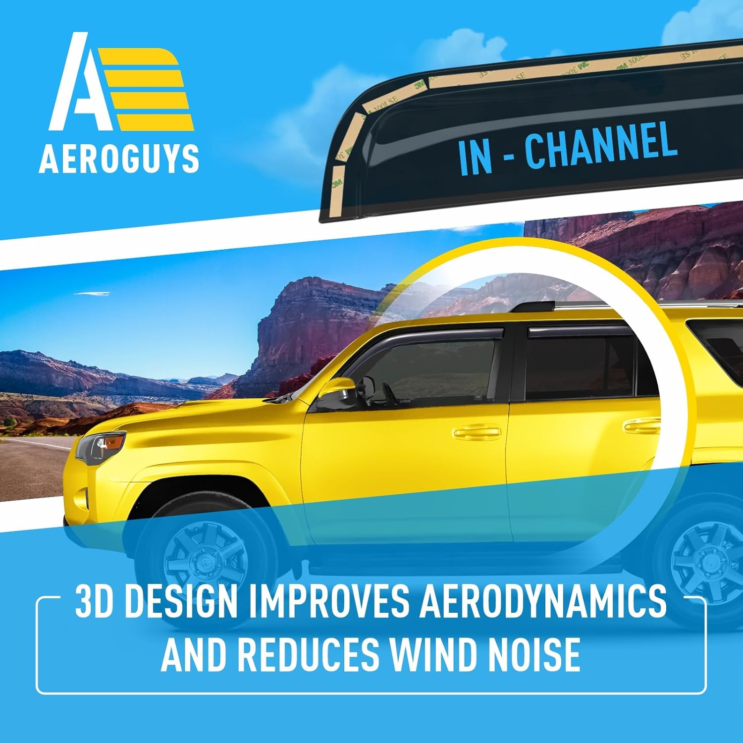 - No Tools Needed, Quick and Easy Assembly β These rain guards are very easy to fit. TAPE-ON INSTALLATION provides perfect fit for your SUV. Just slip it onto your carβs window and your job is done within minutes. There is no drilling or no tools required. Be sure that AEROGUYS window deflectors are water resistant, sun protective and will not bend, break or crack regardless of the weather conditions.