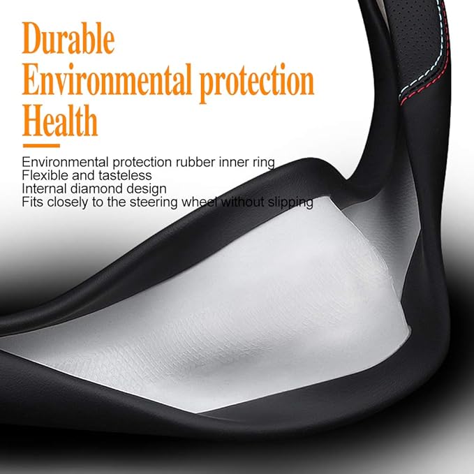 - SAFETY DESIGN:The steering wheel cover adopts an environmentally friendly non-slip rubber inner sole. Driving will be safer, and the journey will make you more relaxed.