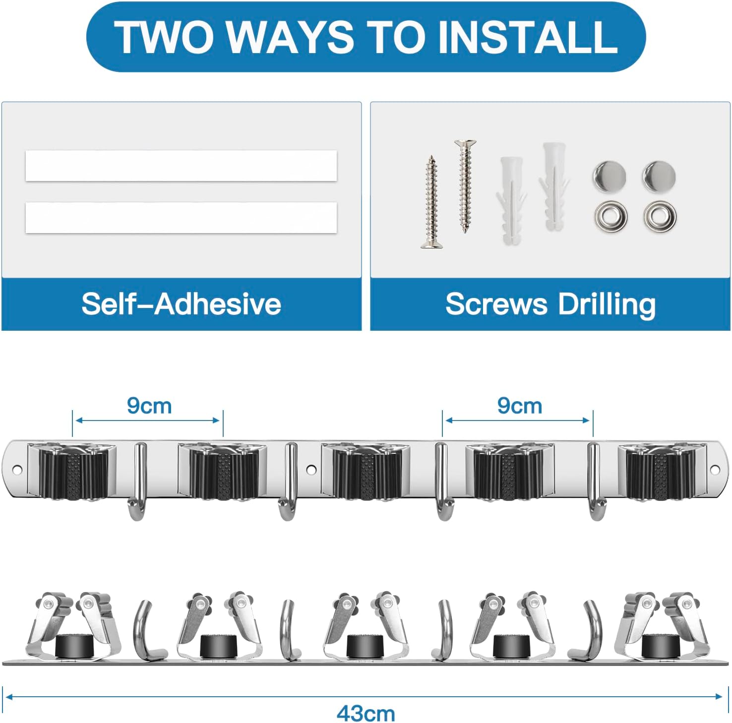 - Heavy Duty: Mop holder grip everything tightly and securely without slip. It can hold up to about 9 tools in total. Keep your place cleaned up and keep things organized