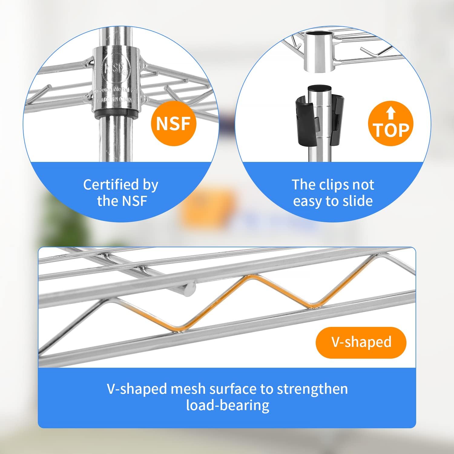 Wire Shelving Unit Metal Shelf Organizer Heavy Duty Wire Rack Storage Unit Rack Utility for Bathroom Office Kitchen (Chrome, 14" D x 24" W x 60" H)