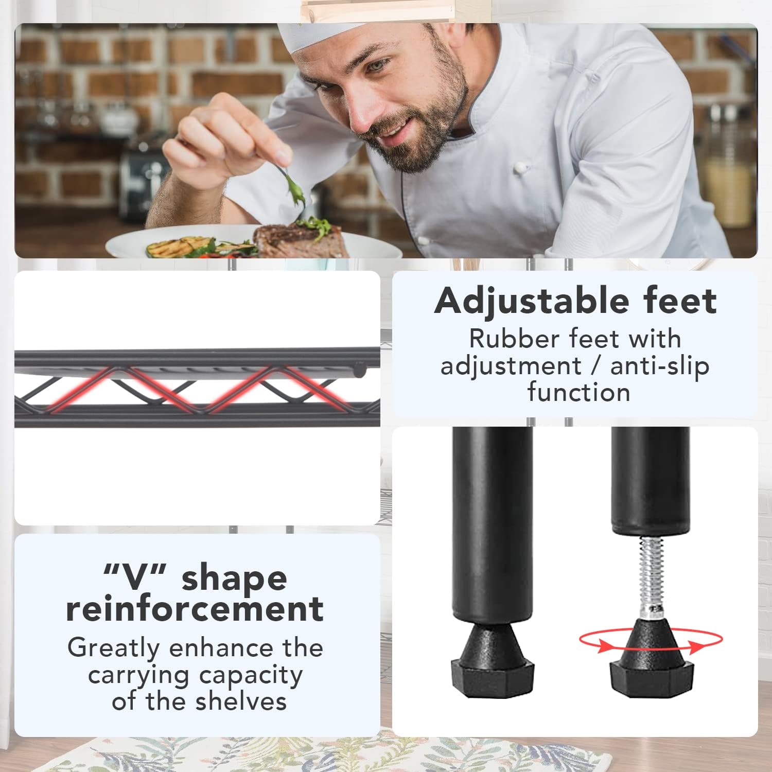- ADJUSTABLE METAL SHELVING: Each tier on this wire shelving unit adjusts in 1-inch increments, letting you customize your shelf's layout for a book shelf, garage storage or closet storage needs.
