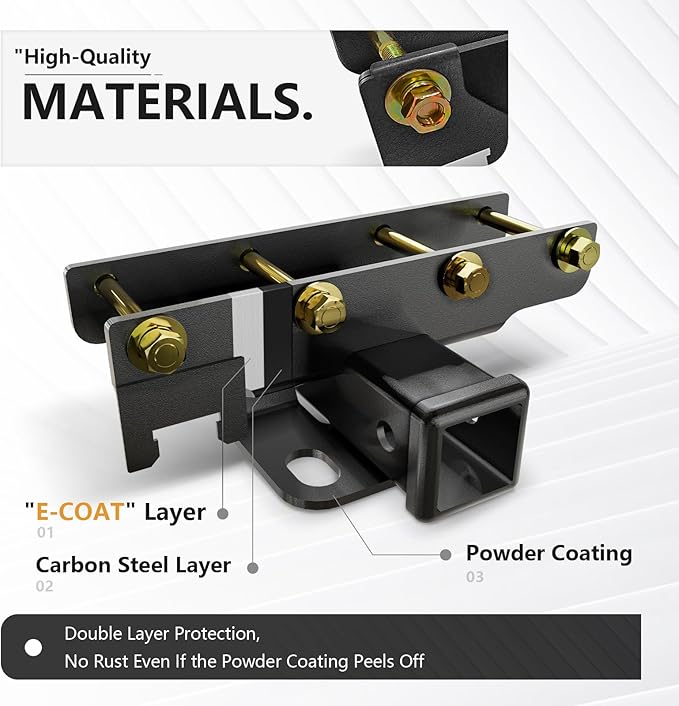 - 【Durable and Corrosion-Resistant】- To protect the hitch receiver from corrosion and damage, it undergoes a professional black coating treatment. This corrosion-resistant coating not only enhances its durability but also effectively withstands the impact of harsh weather conditions and road conditions, prolonging its lifespan.