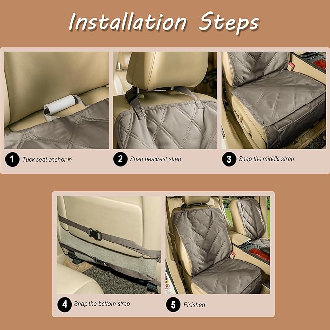 - EASY TO CLEAN & INSTALL – Machine washable in cold water with gentle cycle. Easy to wipe off stain with a damp cloth or just vacuum. So easy to install or remove this car seat protector with adjustable straps. Forget about seat protectors sliding off the seat with your active friends