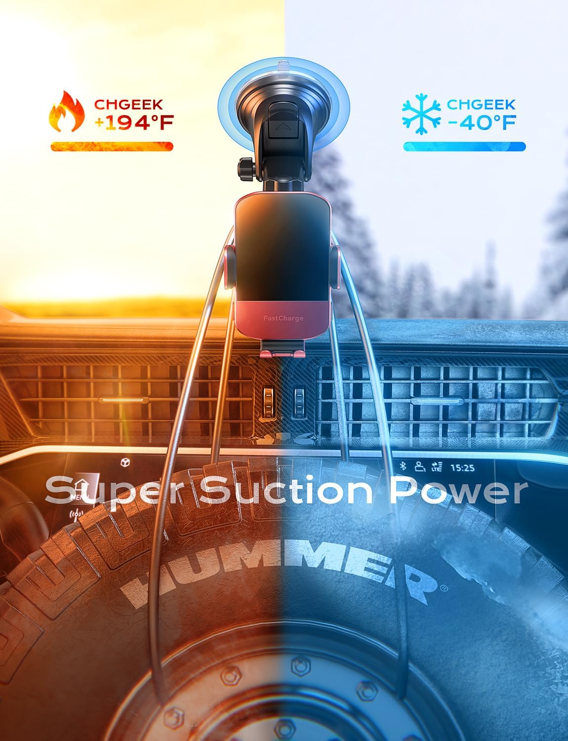 CHGeek Wireless Car Charger, 15W Fast Charging Auto Clamping Car Charger Phone Mount Phone Holder fit for iPhone 15 14 13 12 11 Pro Max Xs, Samsung Galaxy S25 Ultra S24 S23 S22, S21, S20, Red