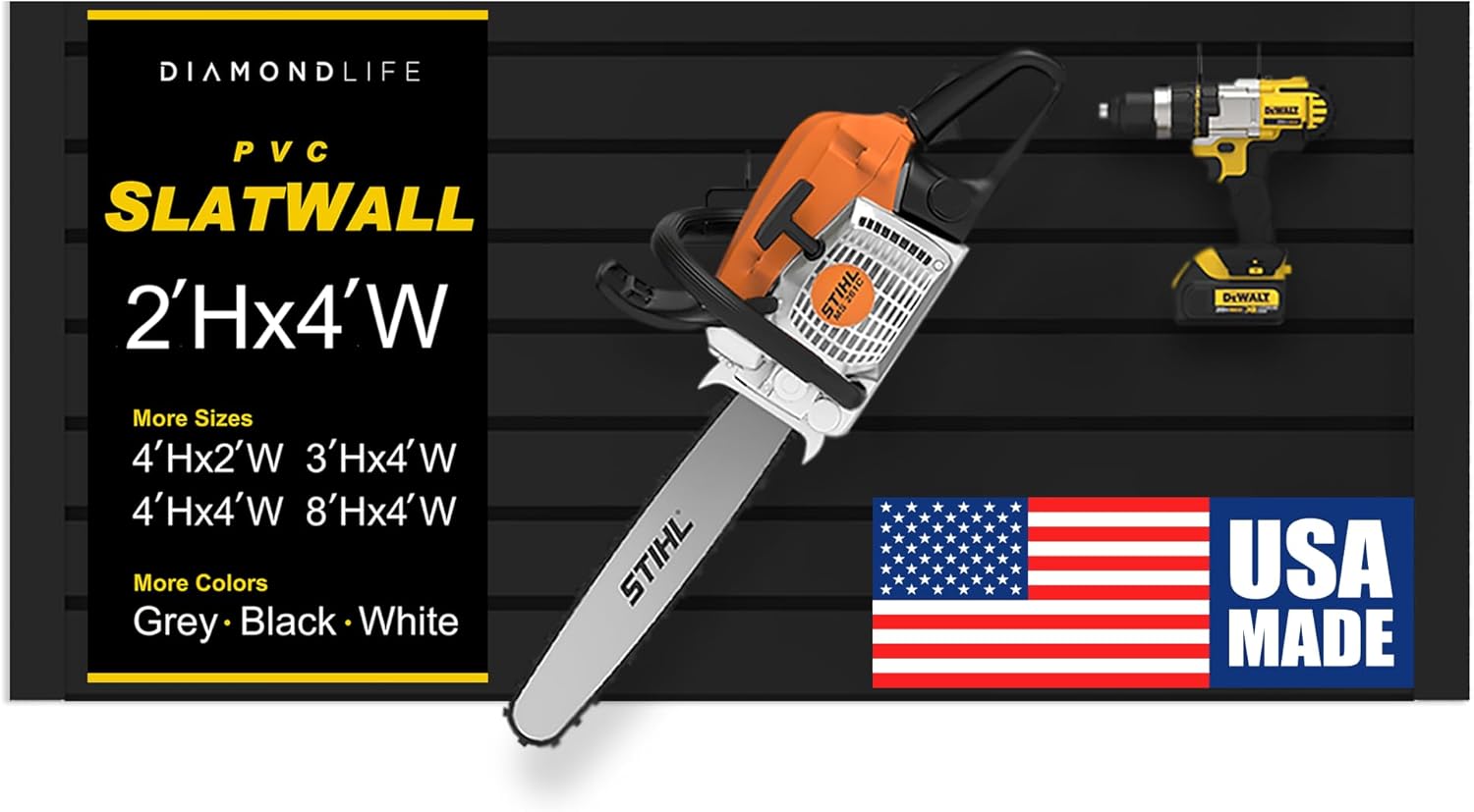 DLDIRECT Slatwall Panel Garage Wall Organizer: Heavy Duty Mounted PVC Rack, Interlocking Slat Paneling for Storage, Board, Shelves System -Black (2’H x 4’W)