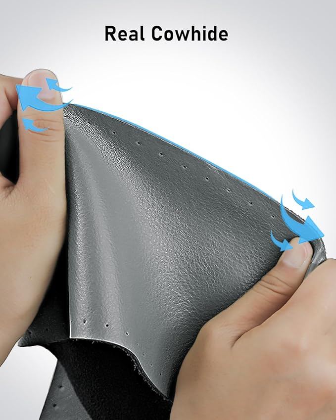 BELINOUS Leather Steering Wheel Cover Lace Up, Stitch On Wrap, Universal Fit 13-24 inch Car Truck SUV Pickup Boat, A Whole Piece of Cowhide, DIY Stitch w/Needle Thread (Size XL0, Gray)