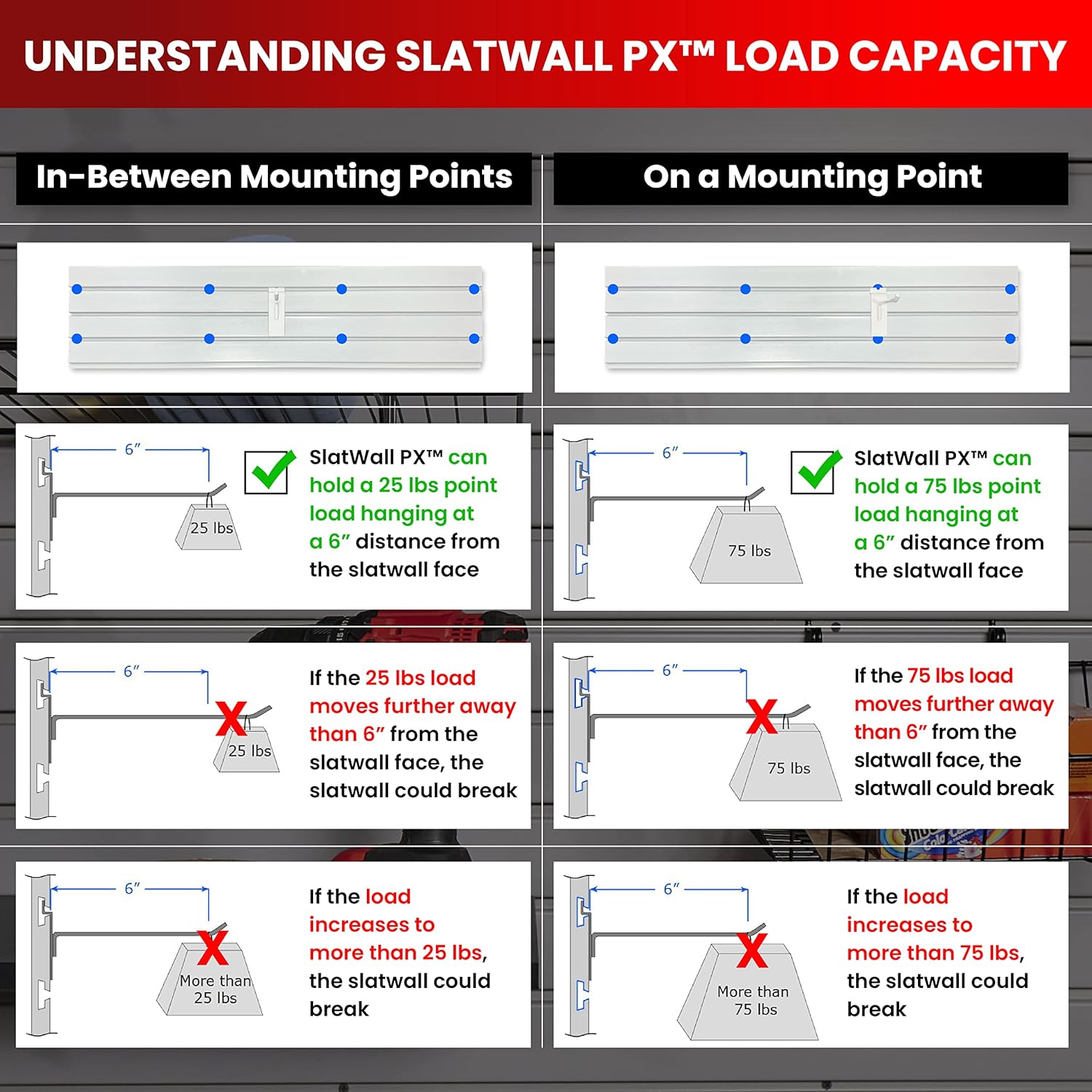 - END YOUR STORAGE NIGHTMARES – Avoid flimsy slat wall panels that warp & break, making it difficult – if not impossible – to install. Our PVC wall panels are easy to install & made with the highest grade, industrial PVC forced through aluminum dies at high pressure to create durable, interlocking PVC garage wall panels that seamlessly stack together. Just attach to wood studs, drywall, or masonry with a few screws!