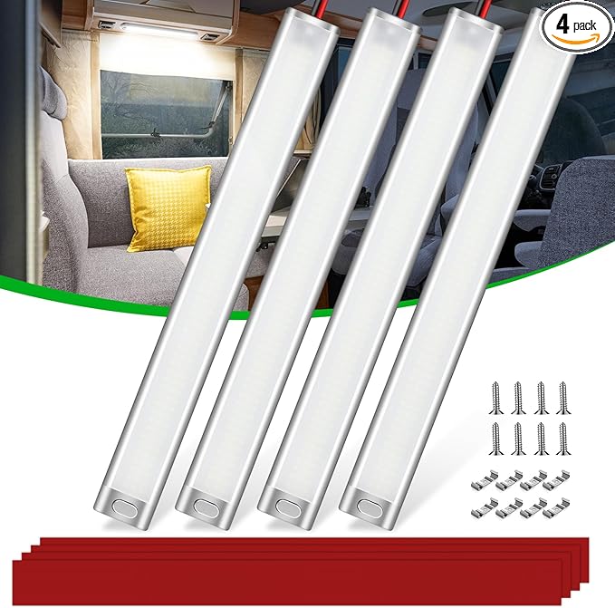 - 【Total Package】 - The package includes 4*12v led lights, 4*strong self-adhesive tape, 8*stainless steel clip and 8*stainless steel screw. And the switch is located at the end of the light bar, which could be conveniently operated any time necessary. This LED car interior light bar approved by multi-security certificates will ensure the safety of you and your vehicle. If you have any questions, please contact us in time and we will help you solve them.