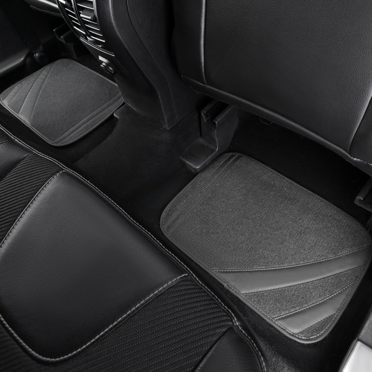 - Universal Fit- Shape and Size is Engineered to Fit Most Cars, Trucks, Vans and SUVs. Front (25.2"L x 17.3W) Rear (11.8"L x 17.3"W). Package Included: 2 front floor mats and 2 rear floor mats.